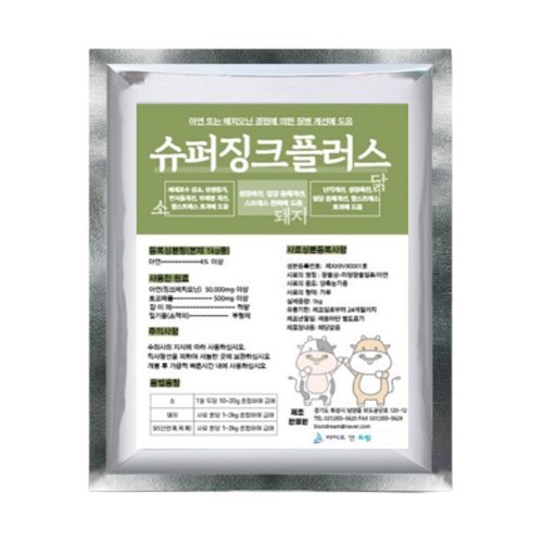 • 축우 슈퍼징크플러스 (SuperZnic Plus) · 아연 또는 메티오닌 결핍으로 인한 질병을 효과적으로 예방하고 개선에 도움을 주는 완벽한 킬레이트 징크-메티오닌 제제입니..